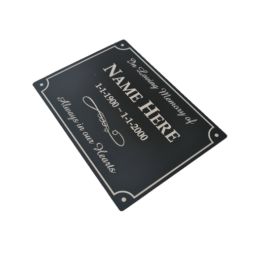 Black Aluminium OUTDOOR MEMORIAL PLAQUE - 140x100mm - 0.8mm thick - Wall Plaque
